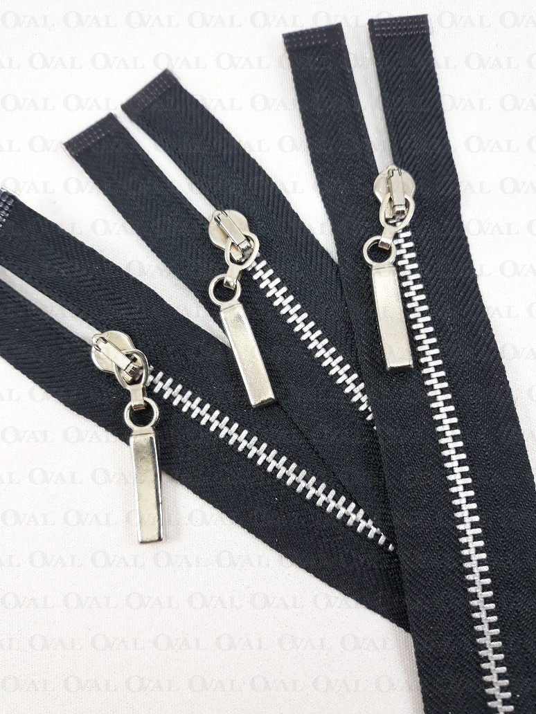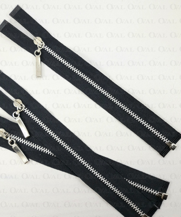 Rozdzielczy zamek metalowy z ząbkami i końcówką w kolorze srebrnym